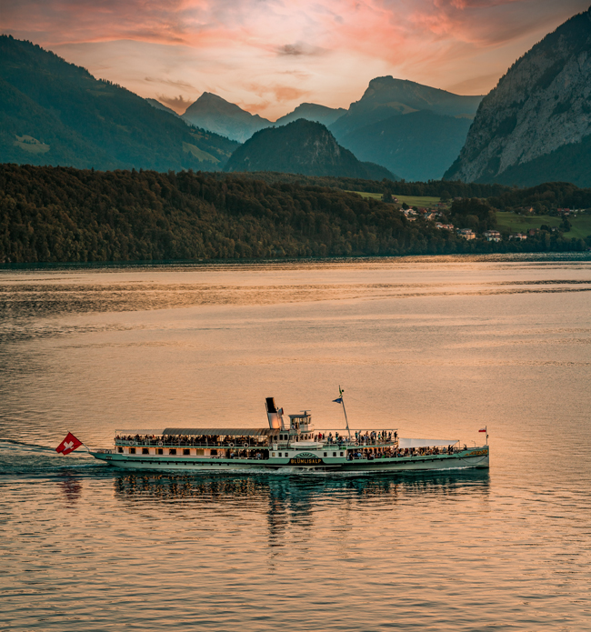 Geniessen Sie Ihre Auszeit auf einem der folgenden 18 Schweizer Seen und Flüssen:
